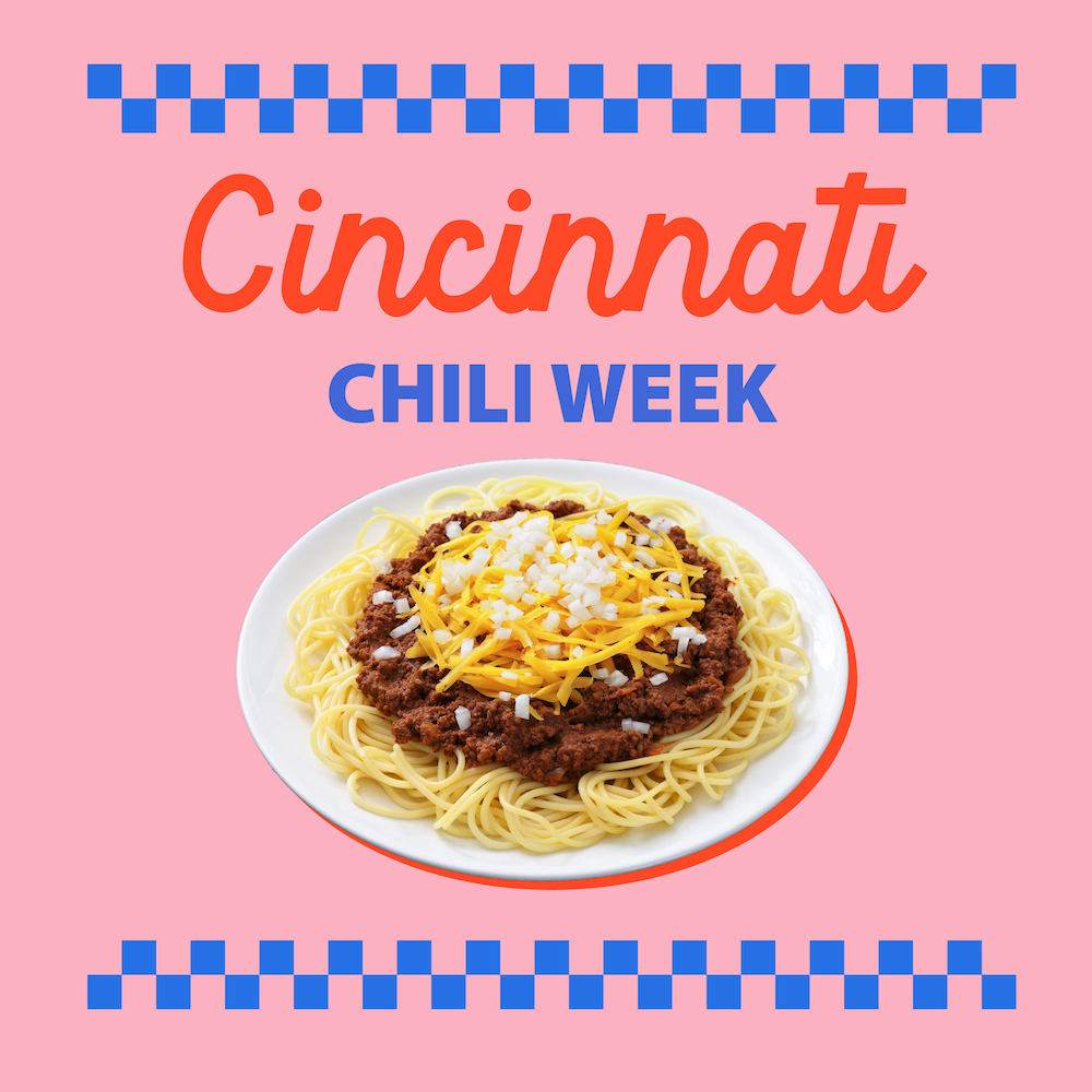 As a long overdue homage to our city’s iconic dish, Cincinnati Chili Week launched in 2024 to bring Cincinnatians their favorite chili menu items. We’re talking 3-ways, 4-ways, juicy, light, coneys, chili cheese fries, chili dip, and more! The goal of Cincinnati Chili Week is to give the people what they want—chili—and to truly celebrate our city’s love of Cincinnati culture. A week to bring chili lovers together to celebrate what this fine city has to offer with $5–$7 chili deals.