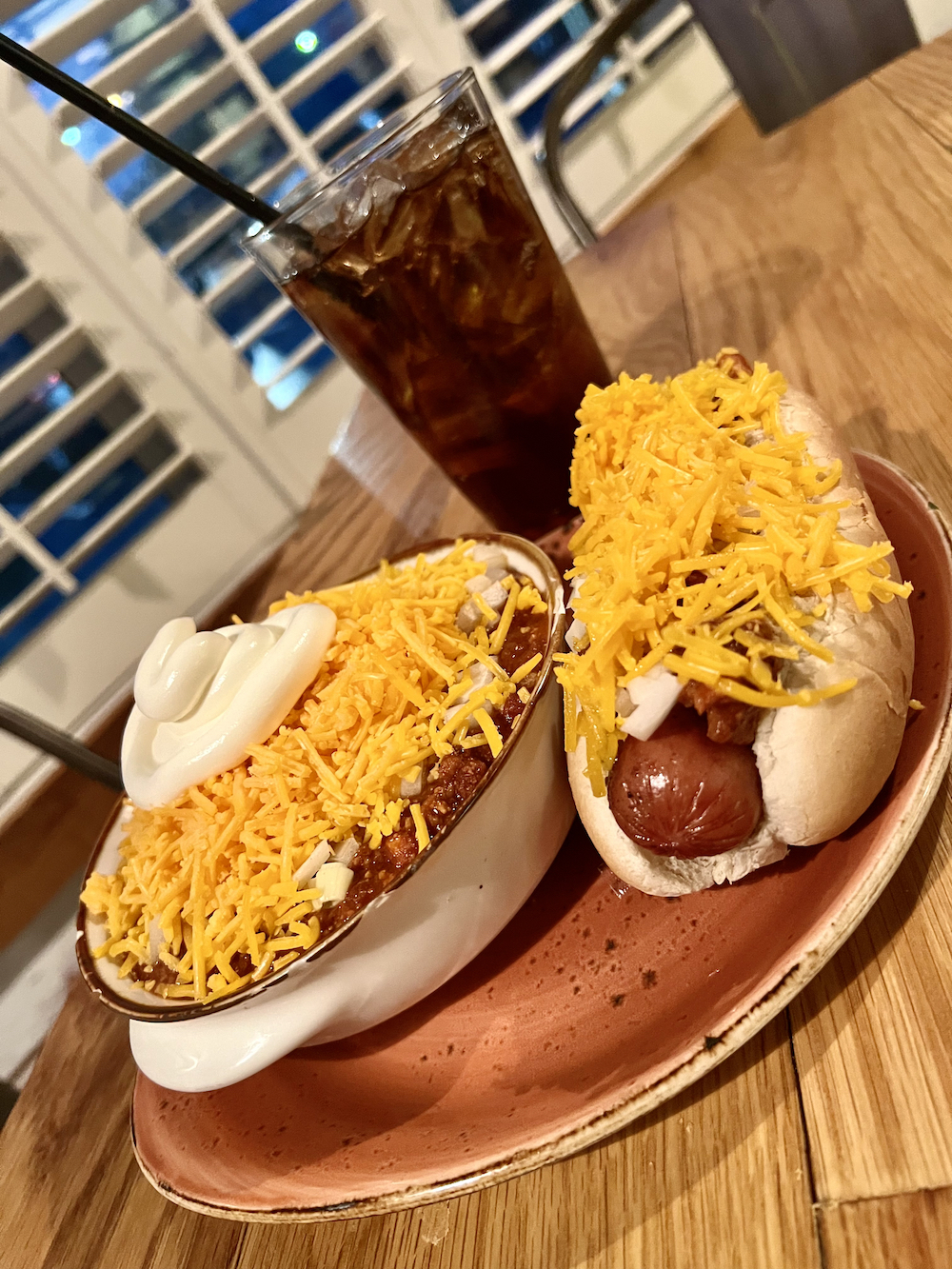 House chili, cheddar cheese, onion