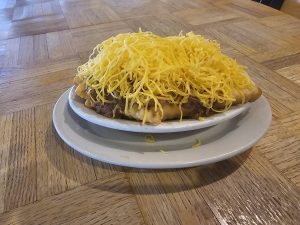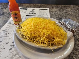 Small crinkle cut fries with chili and cheese for $6